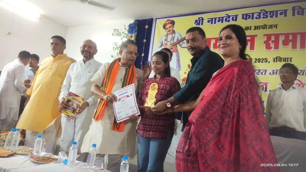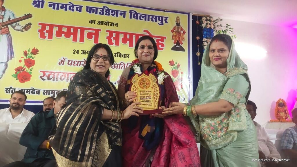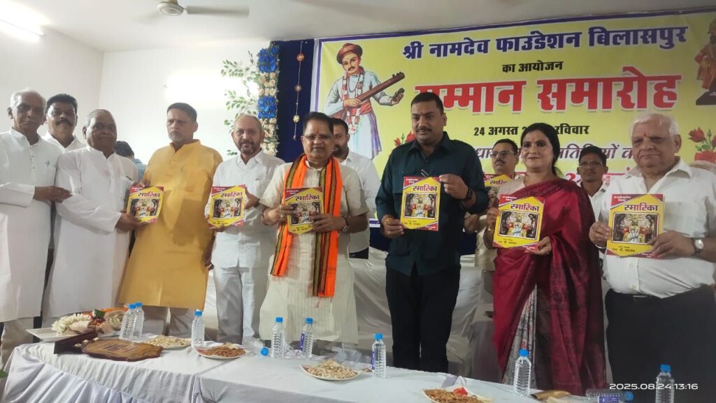 बिलासपुर। श्री नामदेव फाउंडेशन बिलासपुर के द्वारा आज समाज के वरिष्ठ जनों तथा प्रतिभाओं का सम्मान किया गया। कार्यक्रम के मुख्य अतिथि विधायक अमर अग्रवाल, विशिष्ट अतिथि विधायक सुशांत शुक्ला, महापौर पूजा विधानी, सभापति विनोद सोनी, तथा कार्यक्रम की अध्यक्षता कर रहे अखिल भारतीय नामदेव क्षत्रिय महासंघ नई दिल्ली के राष्ट्रीय अध्यक्ष भास्कर राव टोम्पे, तथा राष्ट्रीय महामंत्री एस एस टोनी, फेडरेशन के कोषाध्यक्ष राज्यपाल रोहिल्ला, कार्यकारी अध्यक्ष ज्वाला प्रसाद नामदेव, तथा कार्यक्रम संयोजक शिवकुमार वर्माने समाज की प्रतिभाओं को सम्मानित किया। तथा प्रदेश भर से पहुंचे बुजुर्गों वरिष्ठ जनो तथा समाज की विभूतियों को सम्मानित किया। अतिथियों ने समाज की पत्रिका का विमोचन भीकिया। प्रतिभाओं को सम्मानित करते हुए विधायक अमर अग्रवाल ने कहा है कि नामदेव समाज अनुभवी लोगों का सम्मान करके उनका अनुभव समाज को बढ़ाने के लिए काम कर रहा है। समाज की प्रतिभाओं का सम्मान करना चाहिए। श्री अग्रवाल ने कहा कि हमारे देश में सामाजिक व्यवस्था है समाज को जागरूक करने के लिए आज सभी समाज मेंलाइफ स्टाइल भी बदल गया है। विकसित भारत के लिए सभी समाज काम कर रहा है और आज समाज में सभी वर्गों में आदतों में परिवर्तन भी होने लगा है खासकर स्वच्छता को लेकर। उन्होंने कहा कि हमारे देश की सामाजिक व्यवस्था मजबूत हो हो रही है।