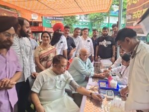 देव शिल्पी भगवान विश्वकर्मा की जयंती और नए भारत के सृजन कर्ता प्रधानमंत्री नरेंद्र मोदी के 75वें जन्मदिवस के शुभ उपलक्ष्य पर सवेरा- एक नई किरण वेलफेयर सोसाइटी और अन्य सहयोगी समाजसेवी संगठनों द्वारा विशाल स्वेच्छिक रक्तदान एवं निशुल्क स्वास्थ्य शिविर का आयोजन बुधवार को बिलासपुर के राजीव प्लाजा उद्यान में किया गया। रक्तदान को महादान माना जाता है क्योंकि आज भी रक्त किसी लैबोरेट्री अथवा प्रयोगशाला में उत्पन्न नहीं किया जा सकता। इसकी आपूर्ति केवल मानव ही रक्तदान के माध्यम से कर सकता है , जिससे बहुमूल्य जीवन की रक्षा की जा सकती है। इसी संकल्प के साथ सवेरा एक नई किरण वेलफेयर सोसाइटी द्वारा अपने तीसरे रक्तदान शिविर का आयोजन किया गया, जिसका शुभारंभ बिलासपुर विधायक अमर अग्रवाल द्वारा किया गया। उन्होंने यहां अपने स्वास्थ्य की जांच भी कराई। श्री अग्रवाल के साथ महापौर पूजा विधानी, भाजपा जिला अध्यक्ष दीपक सिंह, कोषाध्यक्ष गुलशन ऋषि, मीडिया सह प्रभारी दुर्गेश पांडे आदि मौजूद थे।