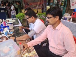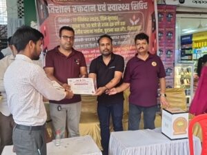 बुधवार को राजीव प्लाजा में आयोजित निशुल्क रक्तदान एवं स्वास्थ्य शिविर का आयोजन सवेरा एक नई किरण वेलफेयर सोसाइटी के साथ राजीव प्लाजा व्यापारी संघ , लायंस प्रीमियम, लायंस बिलासपुर, एरीना एनीमेशन, पंजाबी मानव सेवा समिति, द फाउंडेशन क्रिकेट अकादमी, जिला उद्योग संघ, श्री राम क्लॉथ मार्केट, बुधवार बाजार व्यापारी संघ, हैंड्स ग्रुप, न्यू जेनरेशन, विश्व हिंदू परिषद, बजरंग दल, चेतना और रॉयल स्वीट्स, होटल प्रीत, लायंस कैपिटल का सहयोग रहा। इस दौरान निशुल्क मैडिकल कैंप का भी आयोजन किया गया जिसमें बाल रोग विशेषज्ञ डॉक्टर मनोज चंद्राकर, एमडी डॉक्टर चंद्रशेखर उइके, स्त्री रोग विशेषज्ञ डॉक्टर सुरभि राजगीर, दन्त चिकित्सक डॉक्टर आरके यादव और आयुर्वेदाचार्य डॉक्टर सुखनंदन साहू का सहयोग रहा, जिन्होंने उपस्थित मरीजों के स्वास्थ्य जांच और परामर्श के साथ निशुल्क दवाई भी प्रदान की।