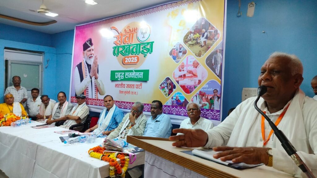 प्रधानमंत्री नरेंद्र मोदी के जन्मदिवस से प्रारंभ सेवा पखवाड़ा के तहत प्रबुद्ध जन सम्मेलन झूलेलाल धाम स्थित सभागार में किया गया। इस अवसर पर मुख्य वक्ता के रूप में उपस्थित छग विधानसभा के पूर्व अध्यक्ष एवं बिल्हा विधायक धरमलाल कौशिक ने कहा कि प्रधानमंत्री के रूप में नरेंद्र मोदी जी के आने से देश के लोगों के जीवन में परिवर्तन आया है,लोगों का सरकार के प्रति भरोसा बढ़ा है क्योंकि मोदी जी ने भारत के स्वाभिमान को बढ़ाया है। उनके द्वारा किए गए स्वच्छता अभियान के तहत कार्य व 12 करोड़ से अधिक शौचालय निर्माण,प्रधानमंत्री आवास निर्माण, जनधन खाता के कारण शासन की योजनाओं का सीधा लाभ उनके खाते में पहुँच रहा है। किसानों को सम्मान मिल रहा है। मोदी जी ने अयोध्या में 500 वर्षों से प्रतीक्षित श्रीराम मंदिर निर्माण का मार्ग प्रशस्त किया जिससे श्रीराम मंदिर बन सका,धारा 370 हटा,नोट बंदी और सर्जिकल स्ट्राइक से आतंकवाद को खत्म किया। आज भारत दुश्मन को घर मे घुसकर मारता है। पहले सेना के पास संसाधनों की कमी होती थी आज सेना अत्याधुनिक हथियारों से लैश है। 2014 के पहले भारत की आर्थिक स्थिति खराब थी 10 नंबर पर थे किंतु 2025 में हम चौथे नंबर आ गए हैं। नक्सलवाद मार्च 2026 तक समाप्त हो जाएगा। आज विश्व शांति के लिए सबसे अग्रणी नाम प्रधानमंत्री नरेंद्र मोदी जी का है। विधायक पुन्नूलाल मोहले ने कहा कि प्रधानमंत्री नरेंद्र मोदी ने देश के नागरिकों के रोटी,मकान व स्वास्थ्य की चिंता कर कार्य किए हैं मुफ्त चावल,प्रधानमंत्री आवास और परिवार के स्वास्थ्य के लिए 5-7लाख रूप हर साल। उसके अतिरिक्त 70 वर्ष से अधिक उम्र के लोगों के स्वास्थ्य के लिए हर वर्ष अलग से 5 लाख रुपए की सुविधा प्रदान की है उसमें अमीर गरीब का प्रश्न नहीं है सभी को लाभ मिल रहा है। छग में महिलाओं को महतारी वंदन दिया जा रहा है। पूर्व सांसद लखनलाल साहू ने कहा कि प्रधानमंत्री नरेंद्र मोदी ने 2014 के बाद विश्व मे भारत का मान बढ़ाया है, श्रीराम मंदिर बनवाकर करोड़ो भक्तों की आस्था को साकार किया है। भारत सभी क्षेत्र में निरंतर आगे बढ़ रहा है। वरिष्ठ नागरिक संघ के प्रदेश पदाधिकारी डीके सोलंकी ने कहा कि प्रधानमंत्री नरेंद्र मोदी के कार्यकाल में निश्चित तौर पर देश का मान सम्मान बढ़ा है, देश चौथा आर्थिक शक्ति बन गया है, सभी नागरिकों के खासकर वरिष्ठ नागरिकों के स्वास्थ्य की चिंता कर 5 लाख रुपए इलाज के लिए दे रहे हैं बिना भेदभाव के। जिला भाजपा अध्यक्ष दीनानाथ केशरवानी ने स्वागत भाषण करते हुए कहा कि प्रबुद्ध जन का सम्मेलन कराकर हम सब गौरवान्वित हैं कि हम सबको उनका सानिध्य मिला। उन्होंने प्रबुद्ध जनों से आग्रह किया कि प्रधानमंत्री नरेंद्र मोदी के नेतृत्व में देश जो विकास और धनात्म