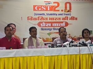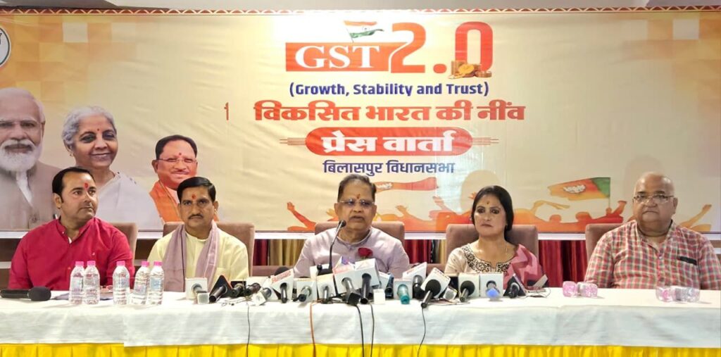 बिलासपुर। प्रधानमंत्री नरेन्द्र मोदी जी के नेतृत्व में 3 सितम्बर 2025 को 56वीं जीएसटी काउंसिल की बैठक में लिए गए फैसलों को देश की कर व्यवस्था का सबसे बड़ा सुधार बताते हुए पूर्व मंत्री एवं बिलासपुर नगर विधायक अमर अग्रवाल ने 22 सितम्बर को होटल ग्रांड अम्बा बिलासपुर में हुए प्रेसवार्ता में कहा कि यह कदम आम जनता, किसानों और व्यापारियों सभी को राहत देगा और अर्थव्यवस्था को नई गति प्रदान करेगा।