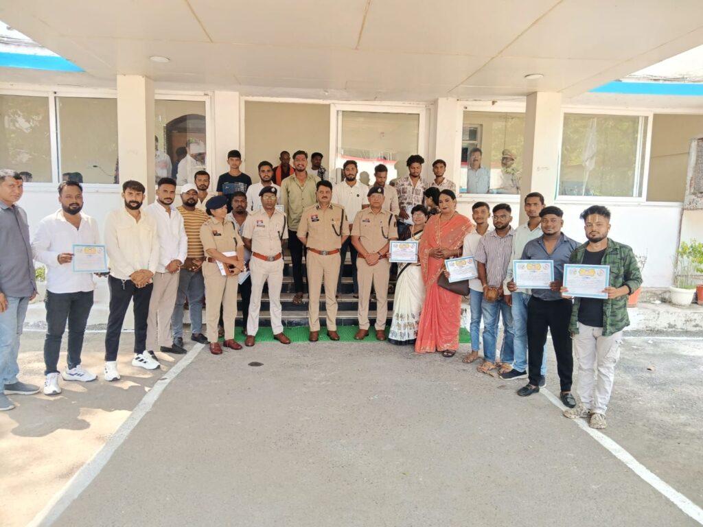गणेश उत्सव के दौरान सुगम यातायात व्यवस्था, स्वच्छता और सुरक्षा मानकों का पालन सुनिश्चित करने वाली शहर की प्रमुख गणेश उत्सव समितियों को वरिष्ठ पुलिस अधीक्षक श्री रजनेश सिंह ने सम्मानित किया। इन समितियों ने प्रशासन और पुलिस द्वारा जारी दिशा-निर्देशों का पालन करते हुए न केवल श्रद्धालुओं की सुविधा सुनिश्चित की बल्कि शांतिपूर्ण और सौहार्दपूर्ण माहौल में विसर्जन कार्यक्रम भी सम्पन्न कराया।
