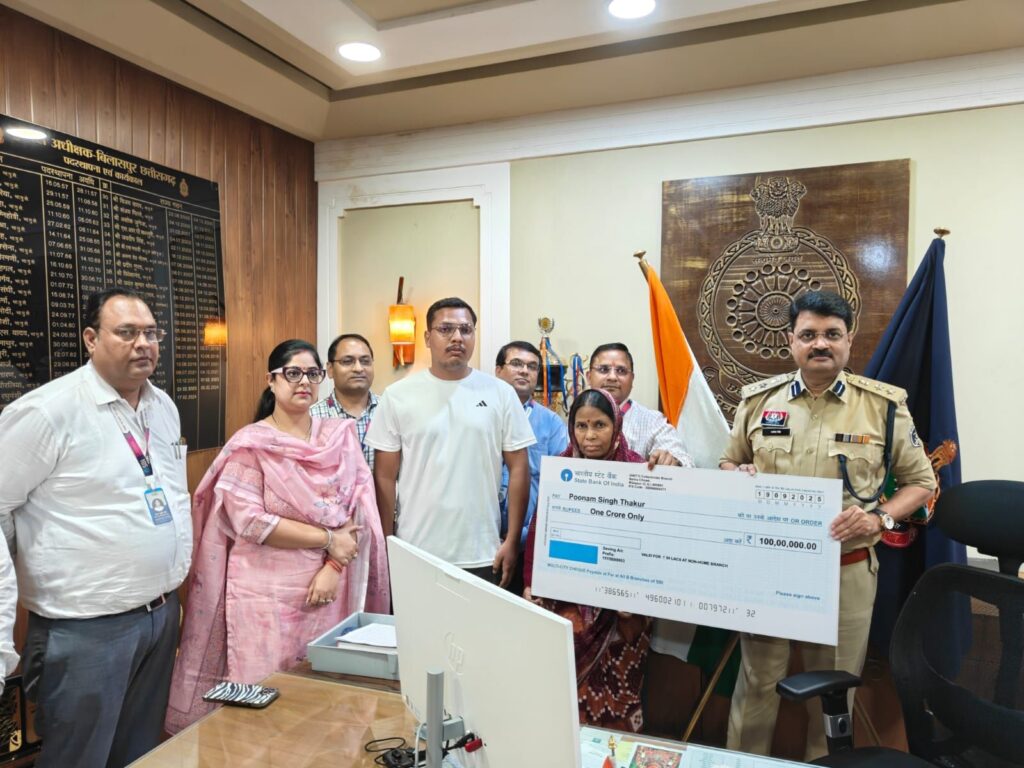 वरिष्ठ पुलिस अधीक्षक श्री रजनेश सिंह (भा.पु.से.) के निर्देश पर कार्यालय पुलिस अधीक्षक के वेतन शाखा प्रभारी और स.उ.नि. (अ) सुरेश कुमार पटेल ने आवश्यक दस्तावेज एकत्र कर एसबीआई से समन्वय स्थापित किया। इसके बाद आज चेक प्रदान करने की प्रक्रिया पूरी की गई।