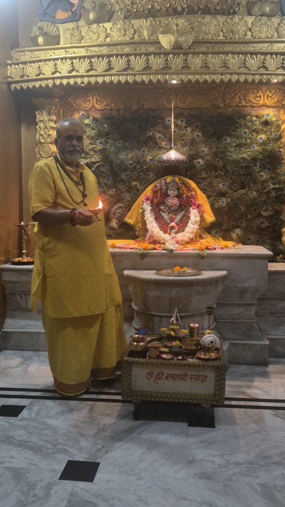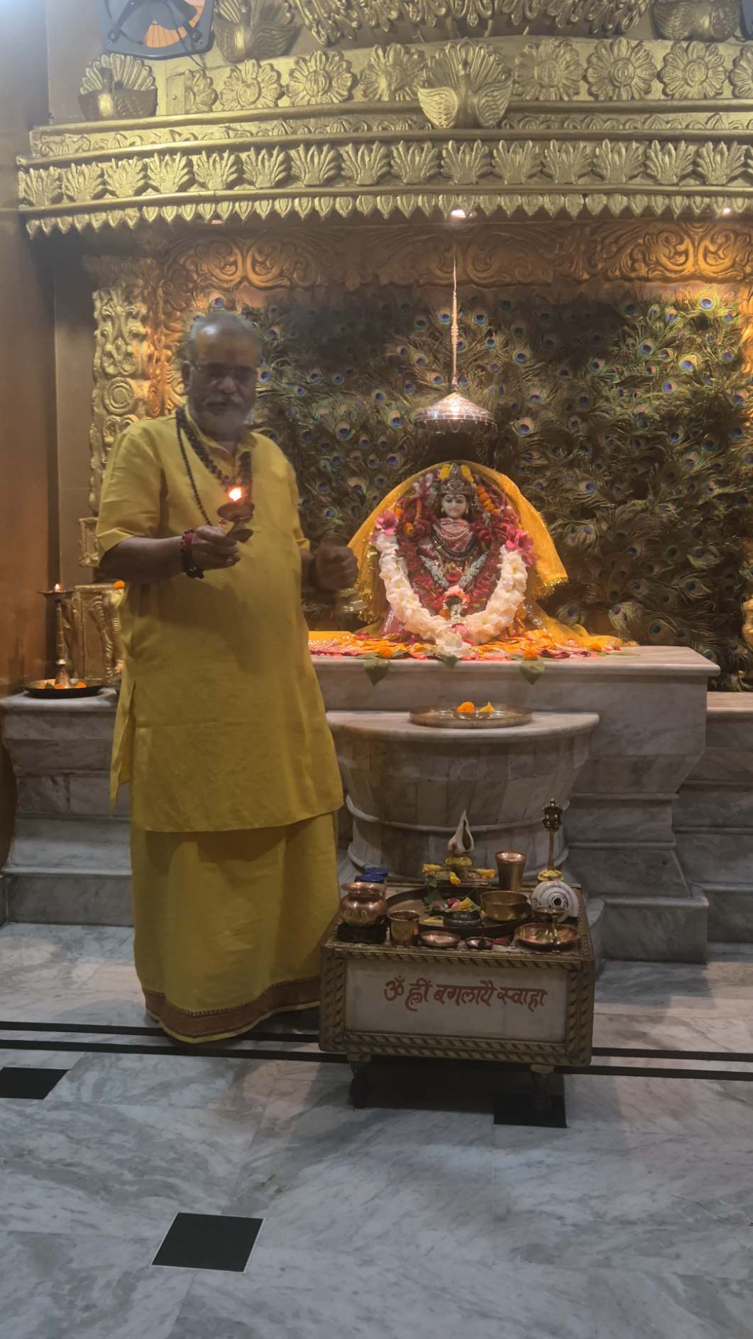 पीतांबरा पीठाधीश्वर आचार्य डॉक्टर दिनेश जी महाराज ने बताया कि अष्टमी के दिन ब्रह्मशक्ति बगलामुखी देवी का पूजन श्रृंगार महागौरी देवी के रूप में किया जाएगा। नवरात्रि की महागौरी देवी, दुर्गा के नौ रूपों में से एक हैं, जिनकी पूजा नवरात्रि के आठवें दिन की जाती है। ‘महा’ का अर्थ है महान और ‘गौरी’ का अर्थ है गोरा या श्वेत। देवी महागौरी अपने शांत और सौम्य रूप के लिए जानी जाती हैं। इनकी उपासना से भक्तों को सुख, शांति और समृद्धि की प्राप्ति होती है।देवी पार्वती ने भगवान शिव को पति रूप में पाने के लिए कठोर तपस्या की थी। इस तपस्या के दौरान, उनका शरीर धूल और मिट्टी से ढक गया था और उनका रंग काला पड़ गया था। उनकी तपस्या से प्रसन्न होकर, भगवान शिव ने उनके शरीर को गंगाजल से धोया, जिससे उनका शरीर बिजली की तरह चमकने लगा और उनका रंग गोरा हो गया। इसी कारण वे महागौरी कहलाईं।