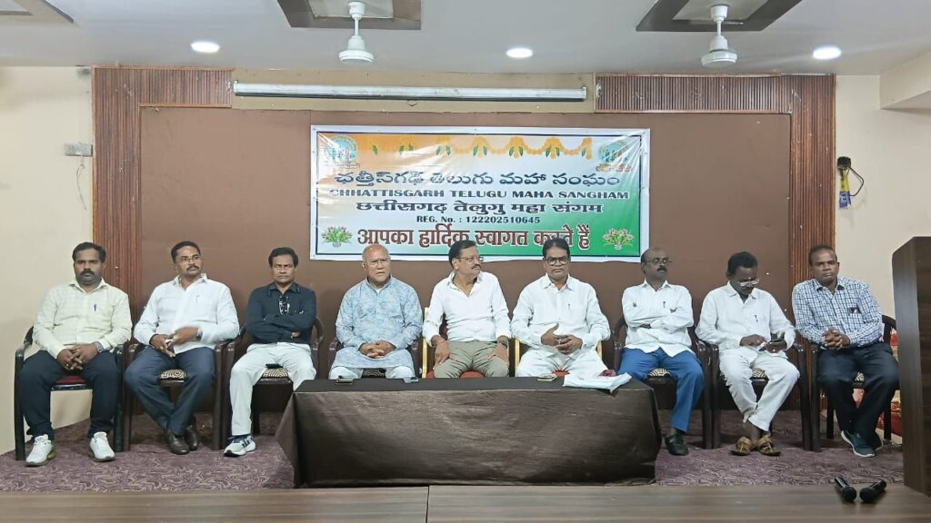 रायपुर। छत्तीसगढ़ में बड़ी संख्या में निवासरत तेलुगु समाज की समस्याओं और प्रतिनिधित्व के मुद्दों पर चर्चा के लिए छत्तीसगढ़ तेलुगु महासंघम् की एक महत्वपूर्ण बैठक राजधानी रायपुर स्थित मायाराम सुरजन लोकायन सभागार में आयोजित की गई। इस अवसर पर संगठन के प्रमुख पदाधिकारी और सदस्य बड़ी संख्या में शामिल हुए।