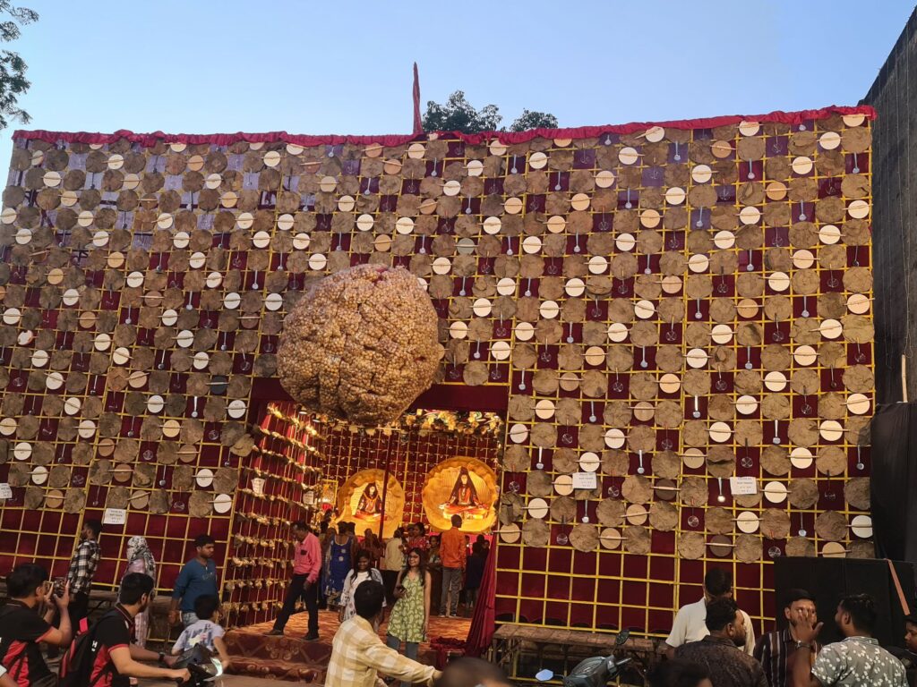खास बात यह है कि यहां 5 दिनों तक गोलगप्पे का ही प्रसाद वितरित किया जा रहा है, जिसके स्टॉल बाहर लगाए गए हैं। गोलगप्पे ही नहीं यहां गोलगप्पा निर्माण में प्रयुक्त सामग्री भी प्रदर्शित की गई है । लोग इन्हें देखकर दंग रह जा रहे हैं। गत वर्ष समिति द्वारा चॉकलेट- ट्रॉफी की थीम पर पंडाल सजाया गया था जो भी खूब चर्चाओं में रहा।