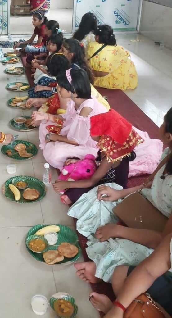 अतिथियों ने अपने उद्बोधन में नवरात्रि के दौरान कन्या पूजन की आध्यात्मिक महत्ता पर प्रकाश डालते हुए इस पुनीत आयोजन की प्रशंसा की। कार्यक्रम का संचालन प्रभा तिवारी ने किया जबकि आभार प्रदर्शन छाया पाण्डेय द्वारा किया गया।