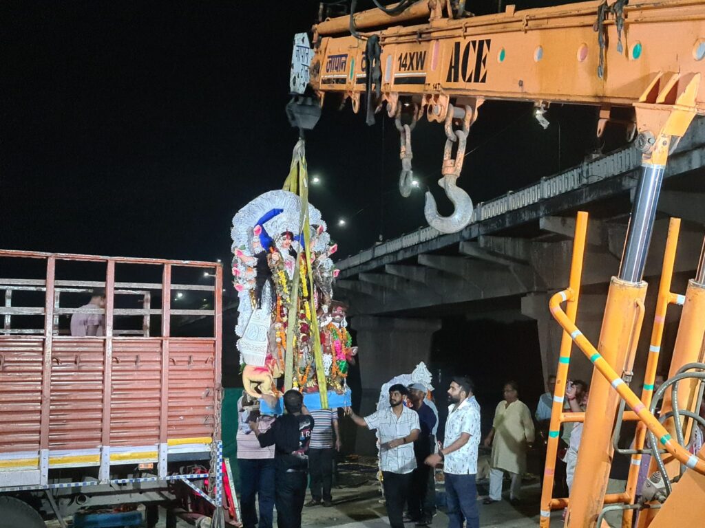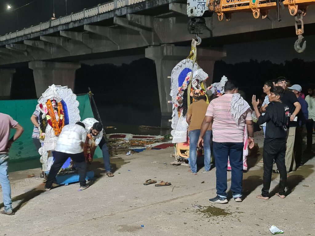 इसके साथ ही प्रतिमा विसर्जन की शुरुआत भी हो गई। कई समितियों ने गुरुवार को ही अपनी-अपनी प्रतिमाओं का विसर्जन किया। इसके लिए प्रशासन द्वारा छठ घाट पर विशेष व्यवस्था की गई थी। रोशनी और क्रेन की मदद से विसर्जन कराया गया, वहीं सुरक्षा को ध्यान में रखते हुए गोताखोरों की तैनाती भी की गई।