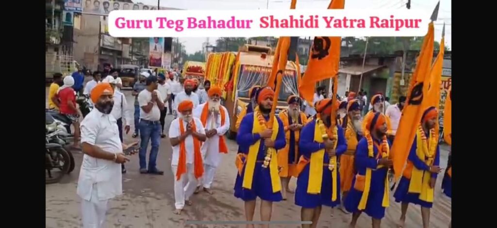 हिंद की चादर नौवें पातशाह धन धन श्री गुरु तेगबहादुर साहिब जी दे 350वे शताब्दी शहादत को समर्पित सिक्ख समाज छत्तीसगढ़ द्वारा 3 अक्टूबर को रायपुर स्टेशन रोड गुरुद्वा से आरम्भ हुई 10 दिवसीय शहीदी यात्रा जिसमे गुरु महाराज पुरातन हस्त लिखित गुरु ग्रंथ साहिब एवम ऐतिहासिक शस्त्रां है । छत्तीसगढ के अनेक शहर भिलाई दुर्ग राजनांदगाँव डोंगरगढ कवर्धा बेमेतरा सिमगा बैतलपुर सरगांव बिल्हा होते हुए 5 अक्टूबर शाम लगभग 6:00 बजे बिलासपुर पहुंच रही है ।