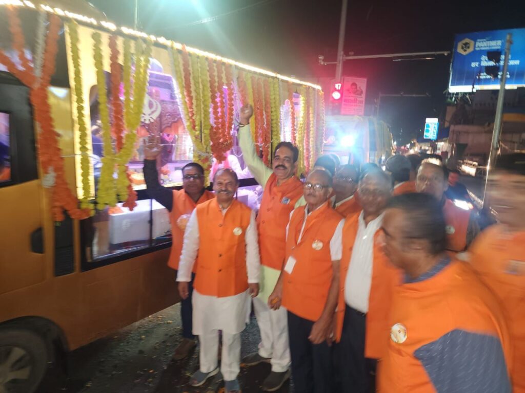 हिंदु समाजिक संगठन के अमित तिवारी शैलेन्द्र यादव के नेतृत्व मे सैकडो लोगो ने संतोष भवन सदर बाजार मे यात्रा का फुलो से स्वागत किया गया।