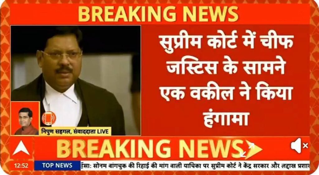 सुप्रीम कोर्ट में सोमवार को उस समय अफरा-तफरी मच गई जब एक वकील ने मुख्य न्यायाधीश पीठ में बैठे न्यायमूर्ति बी.आर. गवई की ओर जूता फेंकने की कोशिश की। सुरक्षा कर्मियों ने तत्परता दिखाते हुए आरोपी अधिवक्ता राकेश किशोर को तुरंत हिरासत में ले लिया।