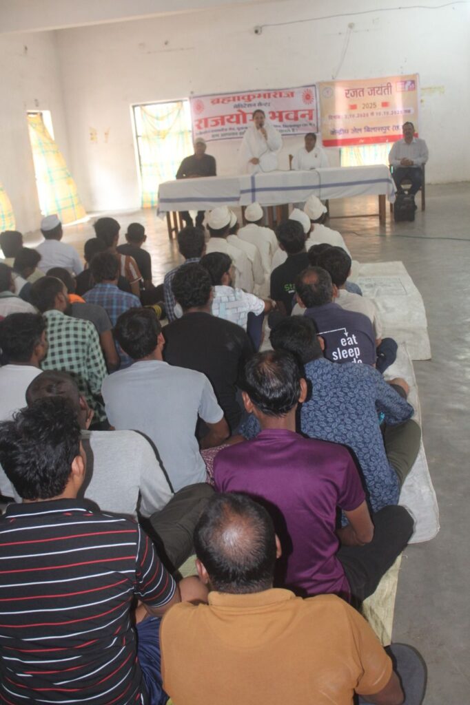 बिलासपुर, 7 अक्टूबर 2025/केन्द्रीय जेल में छत्तीसगढ़ राज्य के 25 वर्ष पूर्ण होने के उपलक्ष्य में 3 अक्टूबर से 10 अक्टूबर 2025 तक विभिन्न कार्यक्रमों का आयोजन किया जा रहा है। इसी तारतम्य में आज राजयोग भवन पुराना बस स्टैंड बिलासपुर के स्वाति दीदी एवं संतोष दीदी द्वारा कार्यक्रम आयोजित किया गया। जिसमें उनके द्वारा बताया गया कि ईश्वर से आप कैसे जुड़ सकते है तथा आपने जो भी अपराध किया है, उसे आप भूल जाइये, पश्चाताप करते हुए नए जिंदगी की शुरुवात करे। जेल में रहते हुए भक्ति भावना से जुड़े और एक दुसरे से प्रेम से रहे।