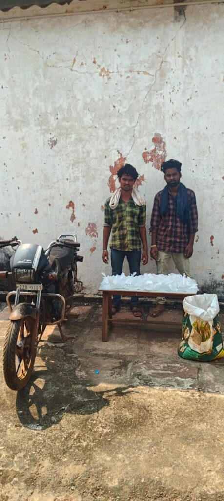 विनोद पाटले (25 वर्ष) और चंद्र प्रकाश रात्रे (27 वर्ष) को 20 लीटर कच्ची महुआ शराब और एक मोटरसाइकिल के साथ गिरफ्तार किया।