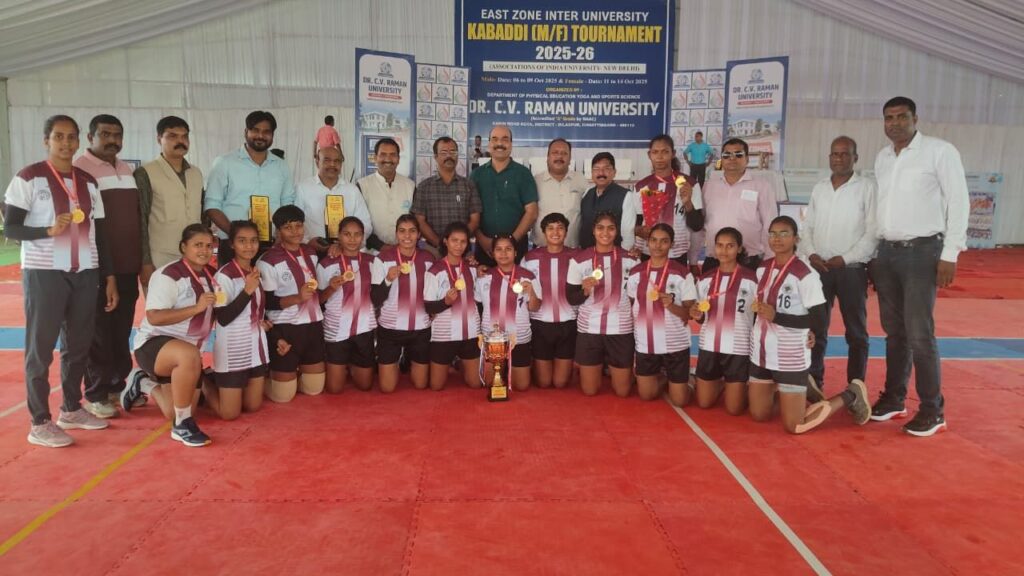 पूर्वी क्षेत्र अंतर विश्वविद्यालय कबड्डी महिला प्रतियोगिता का आयोजन डॉक्टर सी वी रमन विश्वविद्यालय कोटा बिलासपुर में दिनांक 11 अक्टूबर से 14 अक्टूबर के मध्य संपन्न हुई