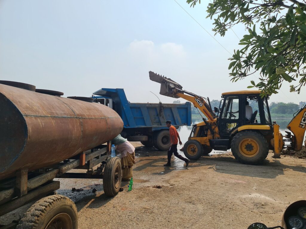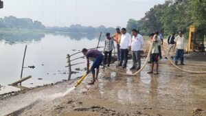 आयोजको के लिए छठ घाट में पसरी गंदगी और नदी में मौजूद प्रतिमाओं के अवशेष बड़ी चुनौती थी, जिन्हें बिलासपुर नगर निगम की सहायता से लगभग हटा लिया गया है। शनिवार को अवशेष और मिट्टी हटाने के बाद पानी से घाट के एक बड़े हिस्से की सफाई की गई। साथ ही यहां बिजली की सजावट का काम भी लगभग पूरा कर लिया गया है। टेंट और शामियाना लगाने के साथ स्वागत द्वार बनाने का कार्य युद्ध स्तर पर जारी है।