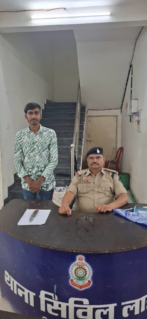 बिलासपुर। थाना सिविल लाइन पुलिस ने सोमवार 20 अक्टूबर को मंगला आजाद चौक के पास एक युवक को बटनदार चाकू सहित गिरफ्तार किया। त्यौहारों के मद्देनज़र क्षेत्र में सुरक्षा के लिए अतिरिक्त पुलिस बल की तैनाती की गई थी। इसी दौरान पुलिस को एक युवक की संदिग्ध गतिविधियाँ दिखाई दीं।