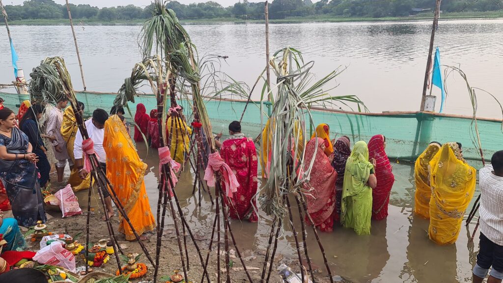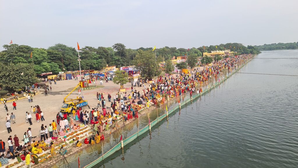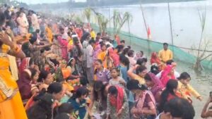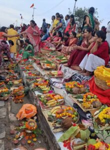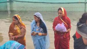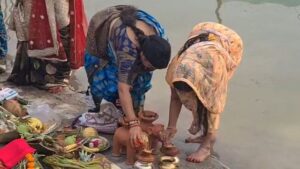 संध्या 5:29 बजे अस्ताचलगामी सूर्य देव को दूध और नदी के जल से अर्घ्य अर्पित किया गया। इस दौरान व्रतियों ने संतान की दीर्घायु, परिवार की सुख-समृद्धि और समाज के कल्याण की प्रार्थना की। डूबते सूर्य को अर्घ्य देने का यह दृश्य आस्था, पवित्रता और प्रकृति पूजन का अद्वितीय उदाहरण था।