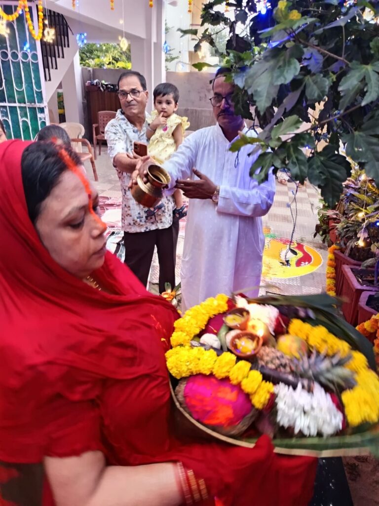 सूर्य देव को अर्घ्य और परिवार की मंगलकामना