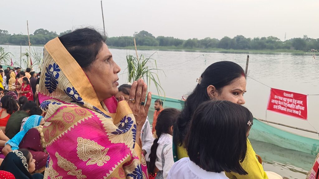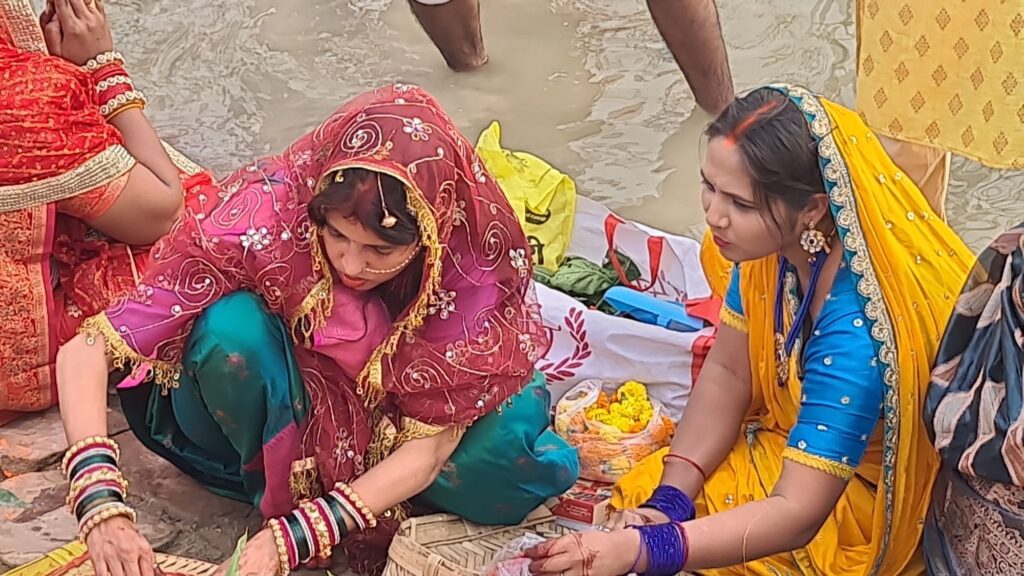 व्रती महिलाओं ने पारंपरिक वेशभूषा धारण की हुई थी, मांग से लेकर नाक तक फैला सिंदूर और चेहरे पर भक्ति की चमक उनके आस्था भाव को प्रदर्शित कर रही थी। घाट पर हर ओर “छठी मइया के जयकारे” गूंज रहे थे।