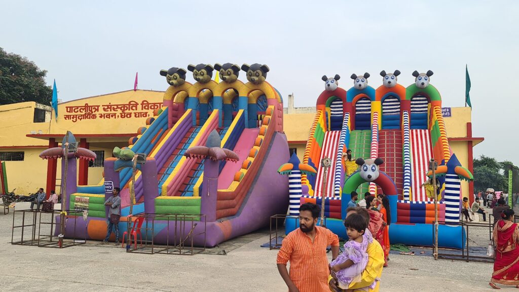 छठ घाट के आसपास मेले जैसा माहौल रहा। खाने-पीने के स्टॉल, बच्चों के झूले, खिलौनों की दुकानों और सांस्कृतिक संगीत ने पूरे वातावरण को उल्लास से भर दिया। अनुमान के अनुसार 50,000 से अधिक श्रद्धालु घाट में उपस्थित रहे।