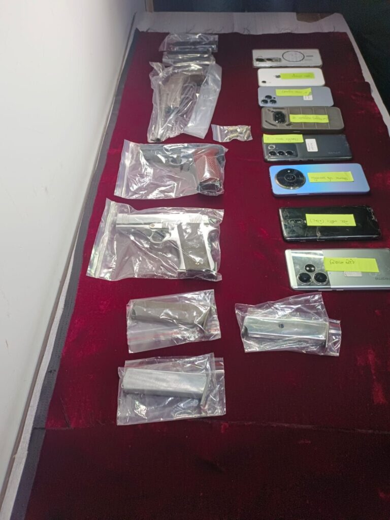 पुलिस ने आरोपियों से 2 देशी पिस्टल, 1 देशी कट्टा, 5 मैगजीन, 4 जिंदा कारतूस, 13 खाली खोखे, 10 बुलेट और 5 मोबाइल फोन बरामद किए हैं।