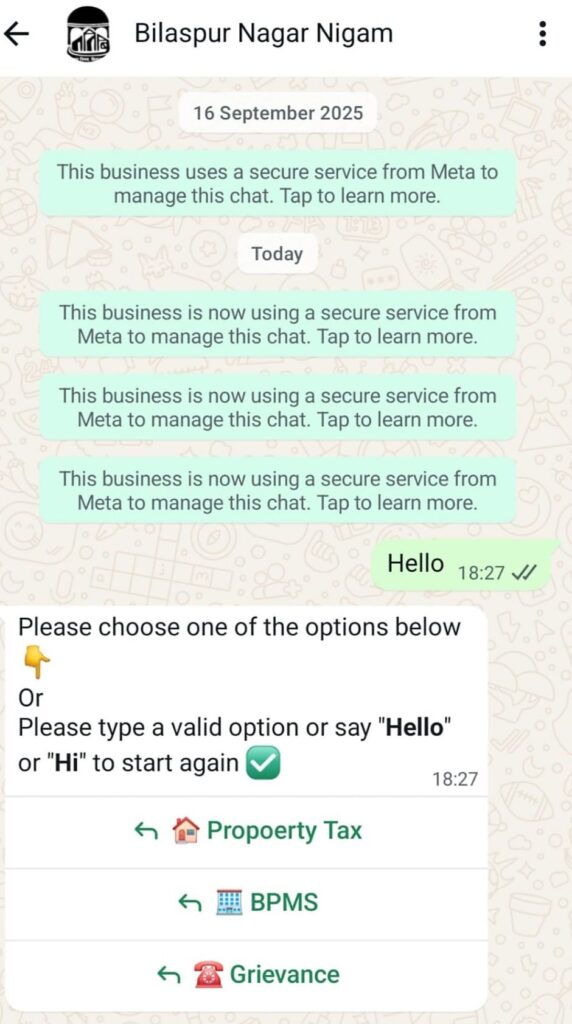 विदित है कि नगर निगम ने डिजिटल इंडिया की दिशा में बड़ा कदम बढ़ाते हुए खुद से तैयार किए गए स्मार्ट चैटबाॅट सेवा शुरू किया है। बिलासपुर प्रदेश का पहला ऐसा नगर निगम है, जहां नागरिक ‘स्मार्ट चैटबॉट’ के जरिए अधिकांश सेवाओं का लाभ घर बैठे ले रहे हैं। इसके माध्यम से लोग प्रॉपर्टी टैक्स की जानकारी और भुगतान, बिल्डिंग परमिशन, शिकायत पंजीकरण, जन्म-मृत्यु प्रमाण पत्र जैसी सुविधाएं चंद मिनटों में प्राप्त कर सकते हैं। यह सुविधा अभी देश के बड़े शहरों जैसे दिल्ली, मुंबई, नागपुर, भोपाल और इंदौर में उपलब्ध है।
