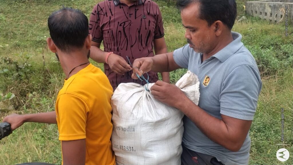 तलाशी के दौरान उनकी मोटरसाइकिल से एक सफेद प्लास्टिक बोरी में रखे