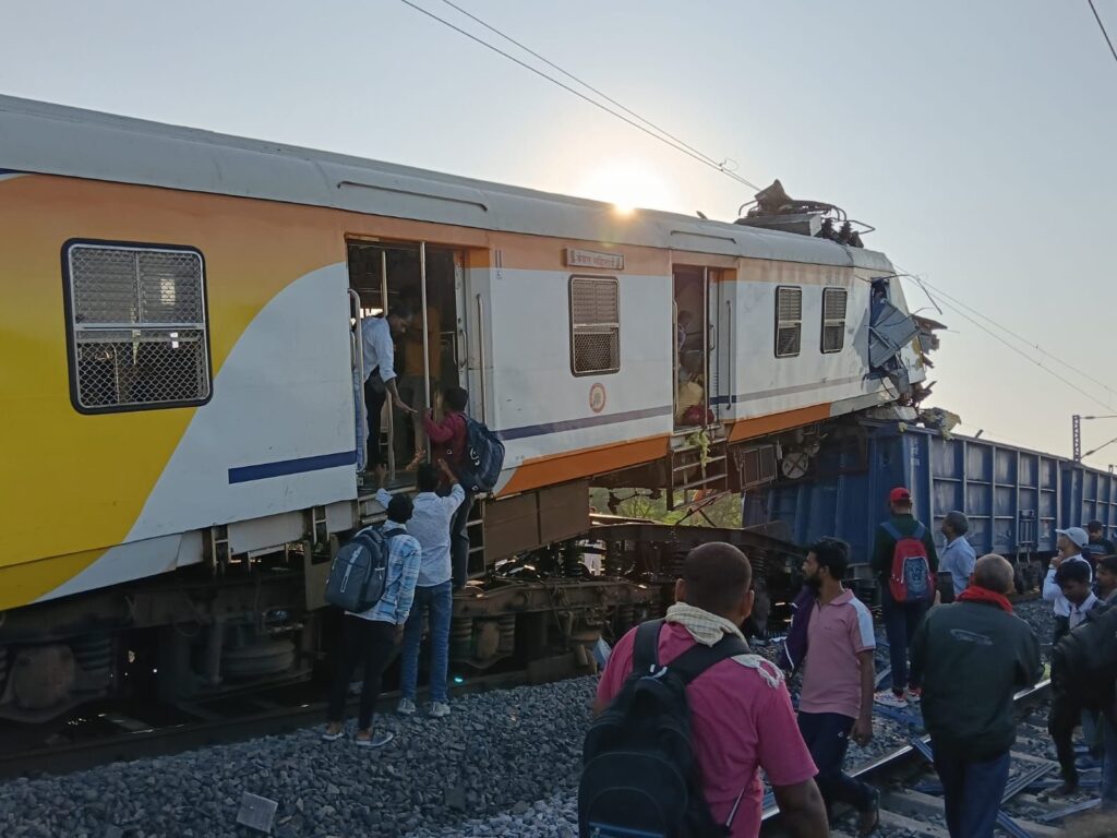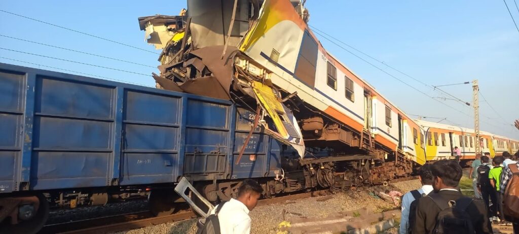 इधर अपनी ओर बढ़ती ट्रेन को देखकर मालगाड़ी के गार्ड ने चलांग लगा कर अपनी जान बचाई । लेकिन मेमू ट्रेन के चालक और महिला सहचालक ट्रेन को रोक नहीं पाए और उनकी ट्रेन सीधे मालगाड़ी से जा टकराई। यह टक्कर इतना भीषण था कि इंजन के सामने के हिस्से के चिथड़े उड़ गए और वह मालगाड़ी के ऊपर जा चढ़ी। इस भीषण हादसे में 10 से अधिक लोगों के मारे जाने की बात अब तक सामने आई है जबकि 15 से 20 लोग घायल है।