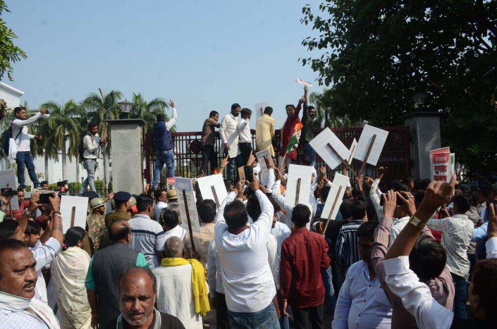 कांग्रेसजन हाथों में तख्ती लेकर रेल मंत्री की इस्तीफा की मांग कर रहे थे, मृतकों को न्याय देना होगा , जैसे नारे लगाते हुए कांग्रेसजन लगभग दोपहर 1.15 बजे जीएम रेल्वे को घेरने के लिए हजारों की संख्या में कांग्रेसजन कुच किये ,सुरक्षा की दृष्टि से चप्पे चप्पे पर पुलिस और आरपीएफ के जवान तैनात थे ,डीआरएम कार्यालय गेट के सामने गेट बंद कर पुलिस खड़ी थी , आगे बढ़ते हुए भीड़ सीधा जीएम रेल्वे कार्यालय पहुंच कर जोरदार प्रदर्शन की गेट में पुलिस चुस्त-दुरुस्त हो कर खड़ी थी आरपीएफ के जवान भीड़ को हटाने के लिए हल्का फुल्का लाठी चार्ज भी किये ,जिससे शांतिपूर्वक आंदोलन को उकसाने का कान आरपीएफ के जवान कर रहे थे, जिससे कांग्रेसजनों से बहस बाज़ी भी हुई ,किन्तु कांग्रेस जनो की संख्या इतनी अधिक थी कि पुलिस और आरपीएफ के जवान मजबूर दिखने लगे ,