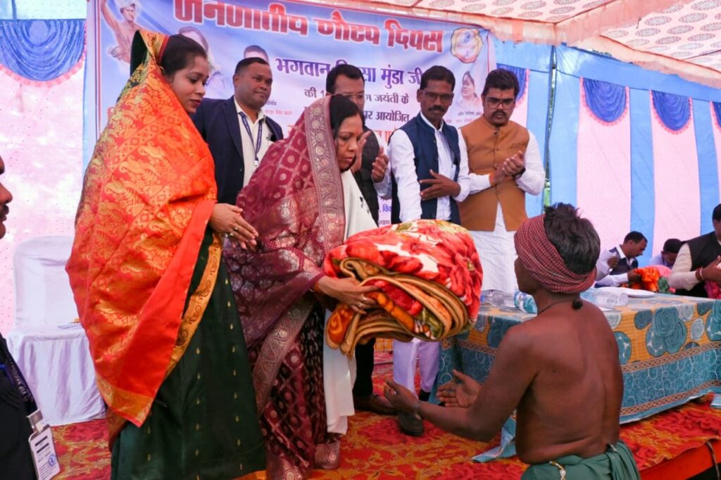 कार्यक्रम में मुख्य अतिथि के रूप में प्रदेश की प्रथम महिला श्रीमती कौशिल्या विष्णु देव साय जी उपस्थित रहीं। उन्होंने अपने प्रेरक उद्बोधन में कहा कि भगवान बिरसा मुंडा केवल जनजातीय समाज के नहीं बल्कि पूरे भारत के महानायक हैं,जिन्होंने अपने संघर्ष और नेतृत्व से समाज को जागृति,स्वाभिमान और एकता का संदेश दिया। उन्होंने कहा कि आदिवासी समाज की संस्कृति,उनके रीति-रिवाज और प्रकृति के प्रति सम्मान भारतीय जीवन मूल्यों का आधार हैं।श्रीमती कौशिल्या जी ने स्वास्थ्य शिविर,वस्त्र मेला,कंबल वितरण और समरसता भोज जैसे कार्यक्रमों की सराहना करते हुए कहा कि ऐसे आयोजन न केवल जनसेवा का माध्यम हैं बल्कि समाज को जोड़ने वाली कड़ी भी हैं। उन्होंने समिति के कार्यों की प्रशंसा करते हुए ग्रामीणों से आग्रह किया कि वे शिक्षा, स्वास्थ्य और आत्मनिर्भरता की दिशा में आगे बढ़ें और अपनी सांस्कृतिक विरासत को सहेजकर रखें।