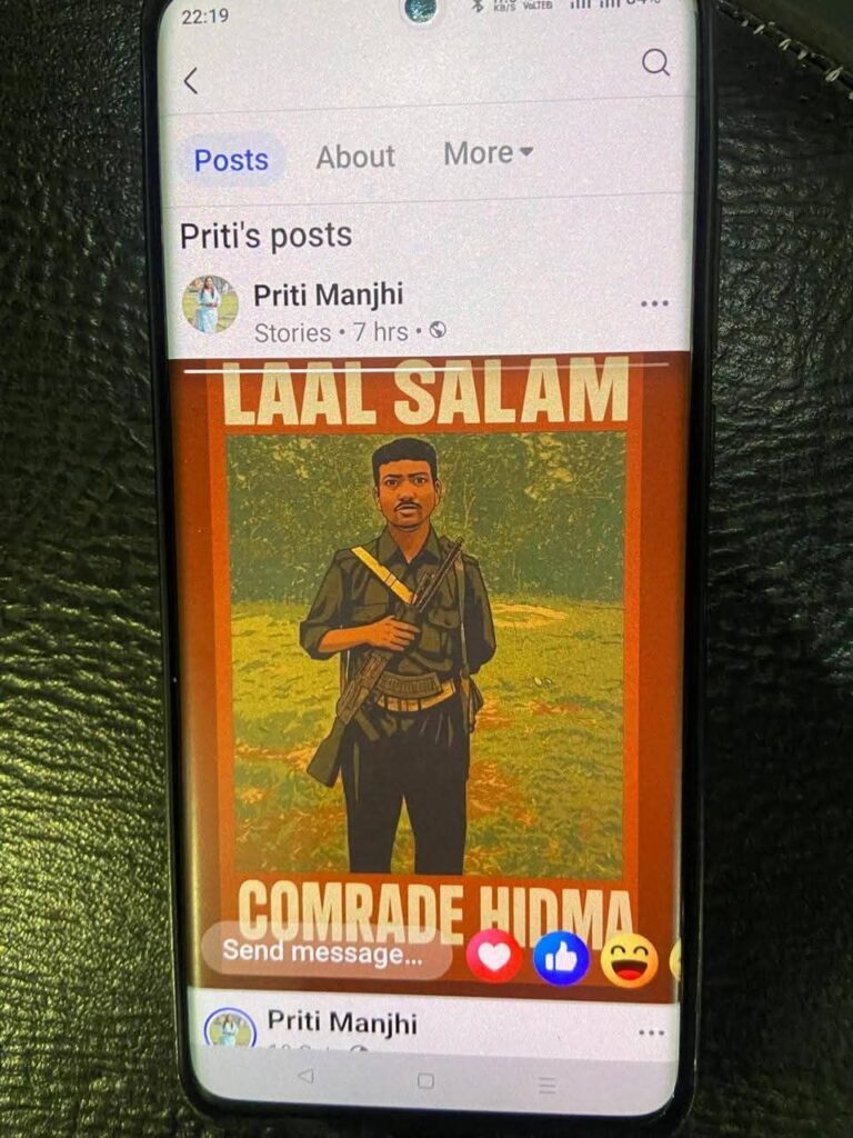 प्रीति मांझी ने अपनी सोशल मीडिया स्टोरी में हिड़मा की तस्वीर लगाते हुए “लाल सलाम कॉमरेड” लिखा था। पोस्ट सामने आते ही यह तेजी से वायरल हो गया और उन्हें तथा कांग्रेस पार्टी को व्यापक आलोचना का सामना करना पड़ा। हिड़मा वही नक्सली कमांडर था, जिस पर झीरम कांड में कांग्रेस के शीर्ष नेताओं की हत्या का आरोप है। ऐसे में कांग्रेस से जुड़े किसी पदाधिकारी द्वारा इस तरह का पोस्ट साझा किया जाना राजनीतिक रूप से भारी विवाद का कारण बन गया।