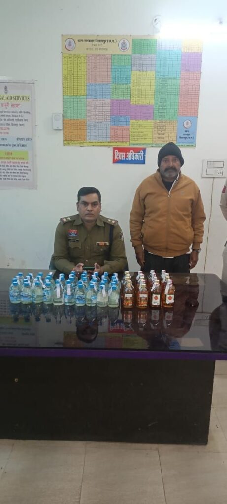 बिलासपुर। अवैध मदिरा बिक्री पर रोक लगाने चलाए जा रहे अभियान के तहत तारबाहर पुलिस को बड़ी सफलता मिली है। पुलिस ने एक आरोपी को स्वदेशी प्लाज़ा के सामने घेराबंदी कर पकड़ा तथा उसके कब्जे से बड़ी मात्रा में देशी शराब बरामद की है।