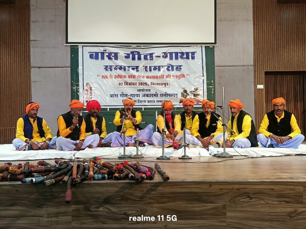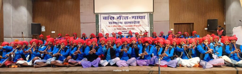 बिलासपुर। बांस गीत गाथा अकादमी छत्तीसगढ़ द्वारा आयोजित बांस गीत गाथा समारोह में एक सौ पचास से अधिक बांस गायक और वादक कलाकारो ने एक साथ बांस गीत, वादन और गाथा का प्रदर्शन कर छत्तीसगढ़ के इतिहास में पहली बार प्रस्तुति देकर रिकॉर्ड बनाया।