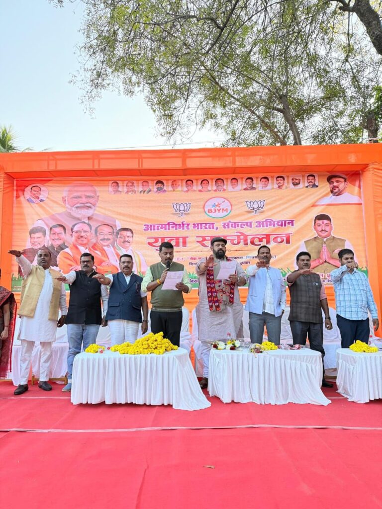 भारतीय जनता पार्टी द्वारा प्रधानमंत्री नरेन्द्र मोदी के आव्हान पर भारत को विकसित राष्ट्र बनाने विभिन्न स्तरों पर कार्यशाला और बैठकें आयोजित की जा रही है जिसका मूल उद्देश्य देश मे रोजगार के अवसर उत्पन्न करना एवं स्वदेशी उत्पादों को बढ़ावा देना है आज बैठक में युवाओं को सम्बोधित करते हुए बेलतरा विधायक सुशांत शुक्ला ने बताया कि आज से लगभग ग्यारह सौ वर्षों की इतिहास को देखे तो विश्व मे भारतीय अर्थव्यवस्था का योगदान चालीस प्रतिशत थी जो कालांतर में चली लम्बी गुलामी के कारण घटते आज दो प्रतिशत रह गई है अब जब देश मे प्रधानमंत्री नरेन्द्र मोदी के नेतृत्व में राष्ट्रवादी सरकार सत्ता में आई है तो भारत को पराम् वैभव की शिखर पर पहुचना लक्ष्य है