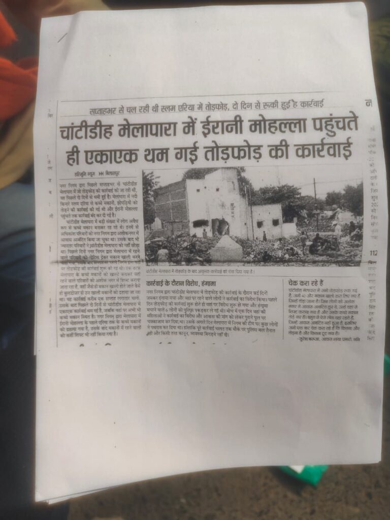 दरअसल चांटीडीह मेलापारा के आसपास बेजा कब्जा खाली करा कर हाउसिंग प्रोजेक्ट लाने की योजना थी। इसी प्रयास में बिलासपुर नगर निगम ने पिछली वर्ष 300 से अधिक बेजा कब्जाधारियों के मकान को तोड़कर जमीन खाली कराई और यहां रहने वालों को अटल आवास में शिफ्ट कर दिया। उस दौरान ईरानी मोहल्ले को यह कहते हुए छूट दे दी गई थी कि उनके पुनर्वास के लिए अटल आवास उपलब्ध नहीं है। एक वर्ष बीत जाने के बाद भी निगम ना तो ईरानी मोहल्ले की भूमि को मुक्त करा सका है और ना ही उनके विस्थापन के लिए कोई आवास तैयार हो पाया है।