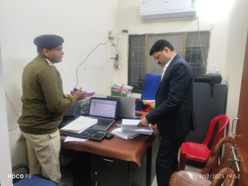 जिले में कानून-व्यवस्था को और अधिक सुदृढ़ करने के उद्देश्य से वरिष्ठ पुलिस अधीक्षक बिलासपुर श्री रजनेश सिंह (भा.पु.से.) ने शनिवार को थाना सरकण्डा का आकस्मिक निरीक्षण किया। निरीक्षण के दौरान उन्होंने थाना परिसर में उपस्थित फरियादियों से प्रत्यक्ष संवाद कर उनकी समस्याओं को गंभीरता से सुना और प्राप्त आवेदनों के त्वरित व प्रभावी निराकरण के लिए संबंधित अधिकारियों को आवश्यक दिशा-निर्देश दिए।