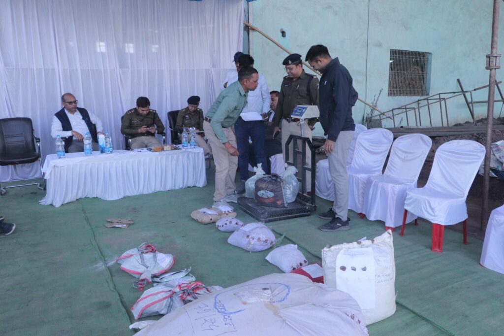 जानकारी के अनुसार, मुंगेली पुलिस द्वारा अभियान “पहल” के तहत जिले में लगातार नशे की रोकथाम एवं जन-जागरूकता अभियान चलाया जा रहा है। इसी क्रम में जिले के समस्त थाना एवं चौकियों द्वारा नशे के विरुद्ध प्रभावी कार्रवाई करते हुए 14 प्रकरणों में अवैध नशीली सामग्री जब्त की गई थी। इन प्रकरणों में जब्त सामग्री के नष्टीकरण हेतु माननीय न्यायालय से अनुमति प्राप्त की गई।