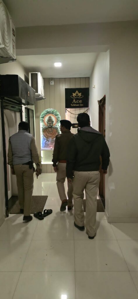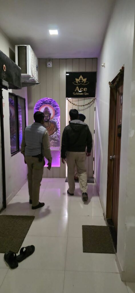 पुलिस टीम ने 36 मॉल स्थित एक्वा स्पा, व्यापार विहार स्थित एसीसी स्पा, भारतीय नगर के दर्शना स्पा, मैग्नेटो मॉल के पास स्थित एलिमेंट्स स्पा तथा महाराणा प्रताप चौक के एक्वा-2 स्पा में दबिश देकर जांच की।