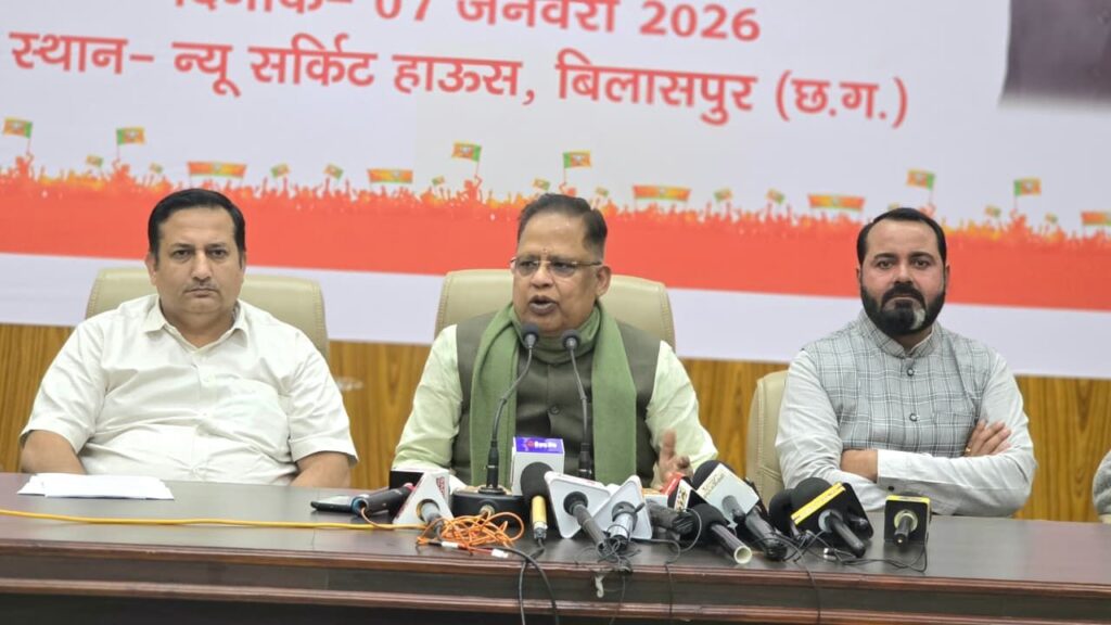 प्रेसवार्ता में पूर्व मंत्री बिलासपुर विधायक अमर अग्रवाल के साथ भाजपा प्रदेश प्रवक्ता विजय शंकर मिश्रा, भाजपा बिलासपुर शहर जिलाध्यक्ष दीपक सिंह, भाजपा बिलासपुर ग्रामीण जिलाध्यक्ष मोहित जायसवाल, महापौर पूजा विधानी, जिला मीडिया प्रभारी केके शर्मा, जिला सहप्रभारी दुर्गेश पाण्डेय, सोशल मीडिया प्रभारी देवेश खत्री उपस्थित रहे।