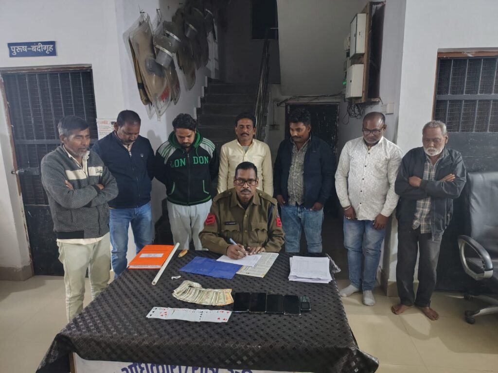 दिनांक 08 जनवरी 2026 को टाउन भ्रमण के दौरान पुलिस को मुखबिर से सूचना मिली कि लावर तालाब के पास कुछ लोग 52 पत्ती ताश के जरिए पैसों का दांव लगाकर जुआ खेल रहे हैं। सूचना के आधार पर पुलिस टीम ने मौके पर घेराबंदी कर दबिश दी, जहां 7 जुआड़ी जुआ खेलते हुए पकड़े गए।