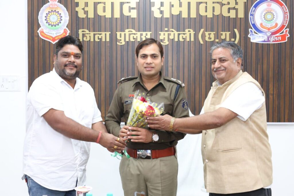 मुंगेली। जिले में साइबर अपराध, यातायात सुरक्षा और नशामुक्ति को लेकर आमजन को जागरूक करने के उद्देश्य से मुंगेली पुलिस द्वारा चलाए जा रहे जन-जागरूकता अभियान ‘पहल’ के अंतर्गत शुक्रवार को पुलिस अधीक्षक कार्यालय मुंगेली के सभाकक्ष में छत्तीसगढ़ चेंबर ऑफ कॉमर्स के पदाधिकारियों एवं व्यापारियों की एक दिवसीय बैठक आयोजित की गई। बैठक की अध्यक्षता पुलिस अधीक्षक श्री भोजराम पटेल ने की।