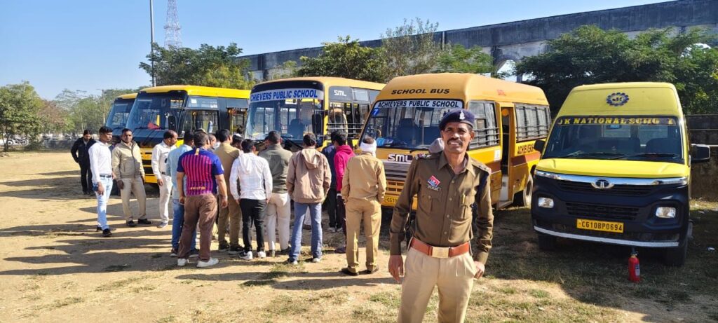 राष्ट्रीय सड़क सुरक्षा माह 2026 के तहत यातायात पुलिस बिलासपुर और परिवहन विभाग ने संयुक्त रूप से जिले की 233 स्कूल बसों का मैकेनिकल मुलाइजा और जांच अभियान चलाया। यह जांच बहतराई स्टेडियम परिसर में की गई, जिसमें बसों की तकनीकी स्थिति के साथ-साथ बस संचालकों, ड्राइवरों, कंडक्टरों और स्टाफ का स्वास्थ्य व नेत्र परीक्षण भी कराया गया।