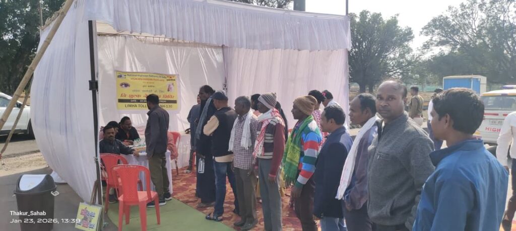 सड़क सुरक्षा माह–2026 के अंतर्गत भारतीय राष्ट्रीय राजमार्ग प्राधिकरण (NHAI) के तत्वावधान में शुक्रवार को लिम्हा टोल प्लाज़ा पर निःशुल्क नेत्र जाँच शिविर का आयोजन किया गया। यह शिविर परियोजना निदेशक श्री मुकेश सिंह परगनिहा के मार्गदर्शन में एवं प्लाज़ा मैनेजर श्री अनूप यादव के समन्वय से Skylark Infra Engineering Pvt. Ltd. द्वारा आयोजित किया गया।