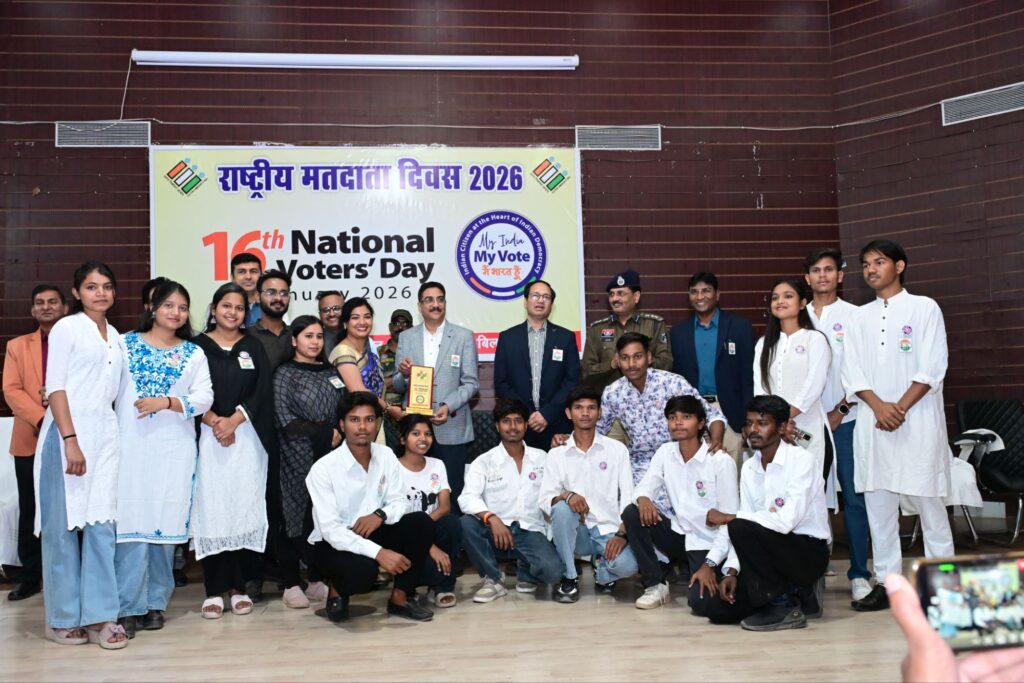 बिलासपुर, 25 जनवरी 2026/16 वें राष्ट्रीय मतदाता दिवस कार्यक्रम का आयोजन आज जिला प्रशासन द्वारा कोनी स्थित बैरिस्टर ठाकुर छेदीलाल कृषि महाविद्यालय के ऑडिटोरियम में किया गया। कार्यक्रम में मुख्य अतिथि के रूप में संभाग आयुक्त श्री सुनील जैन और बिलासपुर पुलिस महानिरीक्षक श्री राम गोपाल गर्ग मौजूद रहे। इस अवसर पर मतदाता जागरूकता की शपथ दिलाई गई और निर्वाचन कार्य ,स्वीप और एसआईआर में उत्कृष्ठ कार्य करने वाले अधिकारी कर्मचारियों को सम्मानित किया गया।