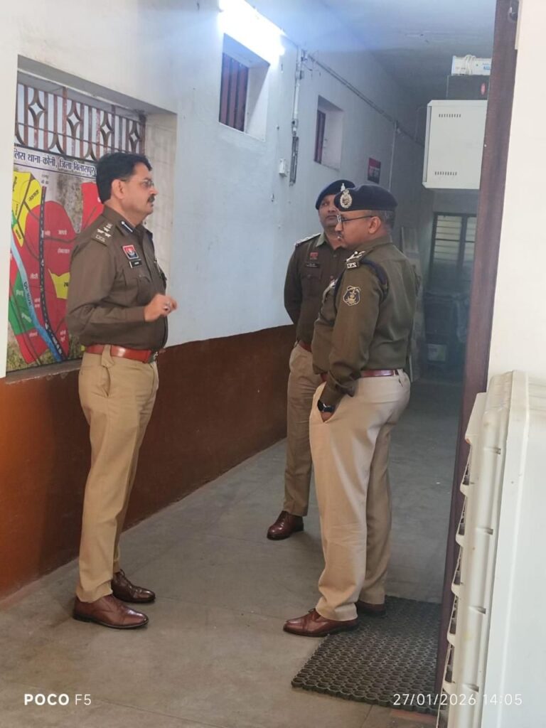 बिलासपुर। पुलिस महानिरीक्षक (आईजी) बिलासपुर रेंज श्री रामगोपाल गर्ग ने मंगलवार 27 जनवरी को जिले के सरकंडा एवं कोनी थानों का औचक निरीक्षण किया। इस दौरान वरिष्ठ पुलिस अधीक्षक बिलासपुर श्री रजनीश सिंह भी उनके साथ मौजूद रहे। निरीक्षण का उद्देश्य थानों की कार्यप्रणाली का जायजा लेना और फरियादियों के प्रति संवेदनशील पुलिसिंग को और मजबूत करना रहा।