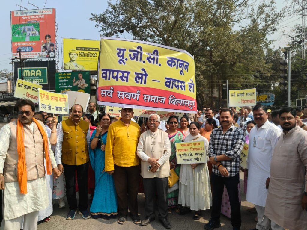 बिलासपुर में सर्व सवर्ण समाज द्वारा निकाली गई यह रैली यूजीसी समता के संवर्धन अधिनियम 2026 के खिलाफ व्यापक असंतोष और सामाजिक एकजुटता का प्रतीक बनकर सामने आई है। आंदोलनकारियों का कहना है कि यह लड़ाई केवल किसी एक वर्ग की नहीं, बल्कि समान शिक्षा और न्यायपूर्ण व्यवस्था की है, जिसके लिए वे हर स्तर पर संघर्ष को तैयार हैं।