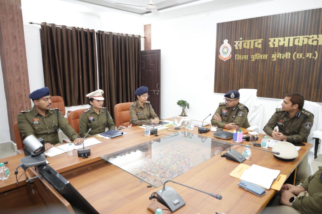 इसके पश्चात पुलिस अधीक्षक कार्यालय मुंगेली में नवनिर्मित प्रशिक्षण भवन का लोकार्पण किया गया। बाद में वरिष्ठ पुलिस अधीक्षक कार्यालय के संवाद सभाकक्ष में समीक्षा बैठक आयोजित की गई। बैठक में जिला कलेक्टर कुंदन कुमार, वरिष्ठ पुलिस अधीक्षक भोजराम पटेल, अतिरिक्त पुलिस अधीक्षक नवनीत कीर छाबड़ा, अतिरिक्त पुलिस अधीक्षक मयंक तिवारी, उप पुलिस अधीक्षक हरविंदर सिंह सहित जिले के समस्त थाना एवं चौकी प्रभारी उपस्थित रहे।