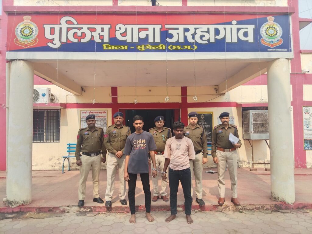मुंगेली। जरहागांव थाना क्षेत्र के ग्राम फरहदा में हुए सनसनीखेज हत्या कांड का मुंगेली पुलिस ने महज 24 घंटे के भीतर खुलासा कर दिया है। बहन से बातचीत करने की शंका को लेकर हुए विवाद में दो युवकों ने मिलकर 19 वर्षीय युवक की चाकू मारकर हत्या कर दी थी। पुलिस ने मामले में दो आरोपियों को गिरफ्तार कर न्यायिक रिमांड पर जेल भेज दिया है।