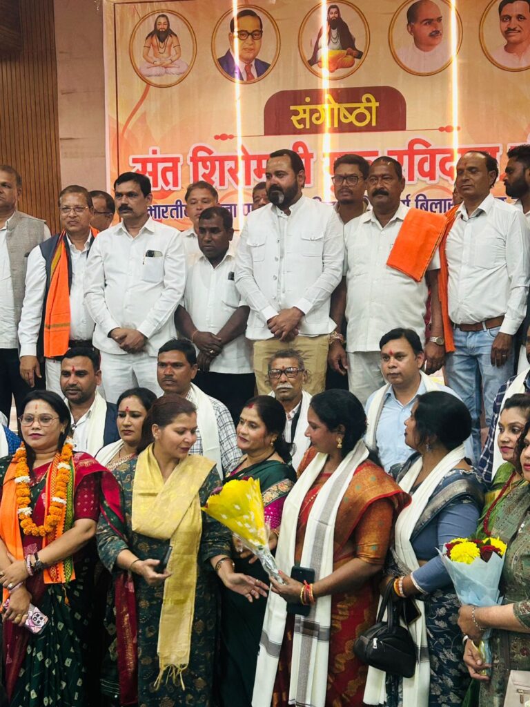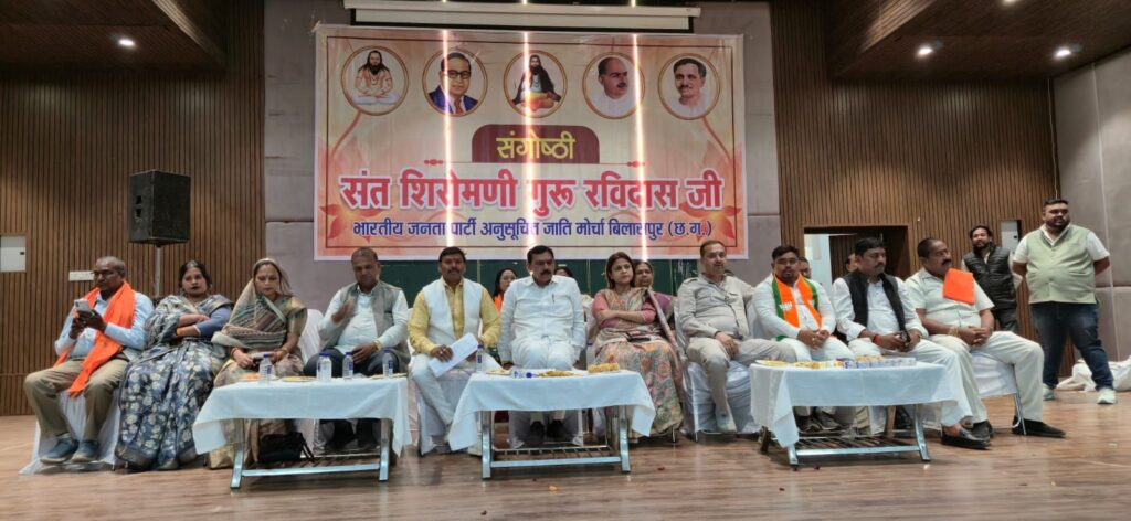 बिलासपुर। संत शिरोमणी गुरू रविदास जी की जयंती के अवसर पर भारतीय जनता पार्टी अनु.जाति मोर्चा द्वारा संगोष्ठी का आयोजन पं.देवकीनंदन दीक्षित सभा गृह, बिलासपुर में सम्पन्न हुआ। इस अवसर पर अनु.जाति मोर्चा के प्रदेशाध्यक्ष सनम जांगड़े, पूर्व मंत्री डॉ.कृष्णमूर्ति बांधी, भाजपा प्रदेश मंत्री हर्शिता पाण्डेय, भाजपा बिलासपुर शहर दीपक सिंह, भाजपा ग्रामीण जिलाध्यक्ष मोहित जायसवाल, जिला पंचायत अध्यक्ष राजेश सूर्यवंशी, मोर्चा प्रदेश महामंत्री चंद्रप्रकाश सूर्या, मोर्चा जिलाध्यक्ष घनश्याम रात्रे, तुलसी बघेल सहित अनु.जाति मोर्चा के पदाधिकारी व कार्यकर्ता उपस्थित रहे।