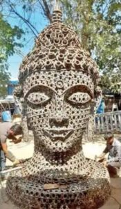 रेलवे के कोचिन डिपो में अनुपयोगी कबाड़ को कला में ढालते हुए भगवान बुद्ध की 10 फीट ऊंची भव्य प्रतिमा तैयार की गई है। इस अनोखी कलाकृति को बनाने में रेलवे के खराब पड़े करीब 3500 लॉकिंग प्लेट और 400 स्प्रिंग के टुकड़ों का उपयोग किया गया है।
